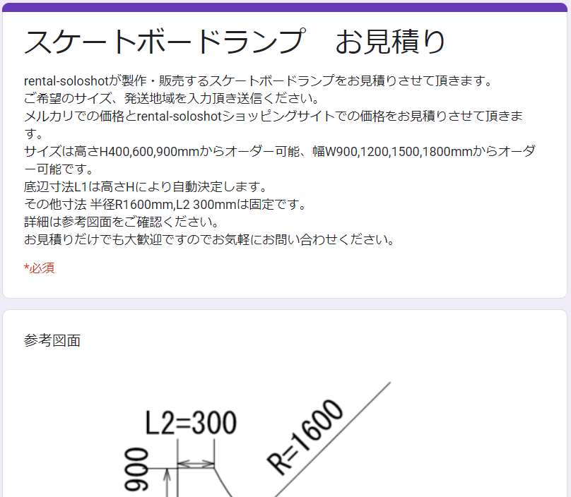 スケートボードランプ オーダーお見積ページ